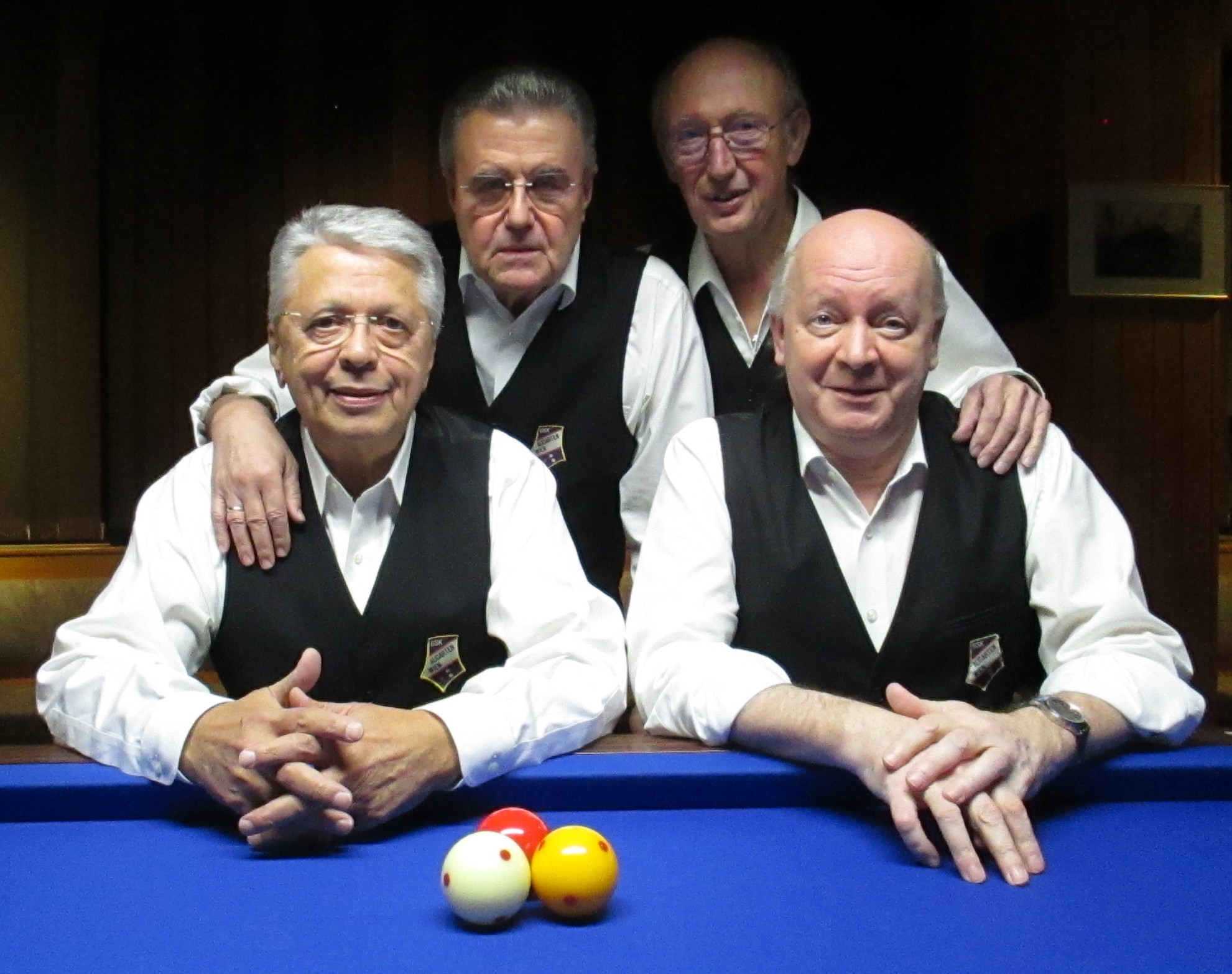 Verpasste nach dem 1. Pottendorfer Billardklub auch dem Titelverteidiger BSK Union Wien eine gehörige Abreibung – die Dreiband Bundesliga Mannschaft des BSK Augarten, v.l.n.r. Franz STENZEL, Hans WERNER, Kurt MASTNY, Gerhard RALIS