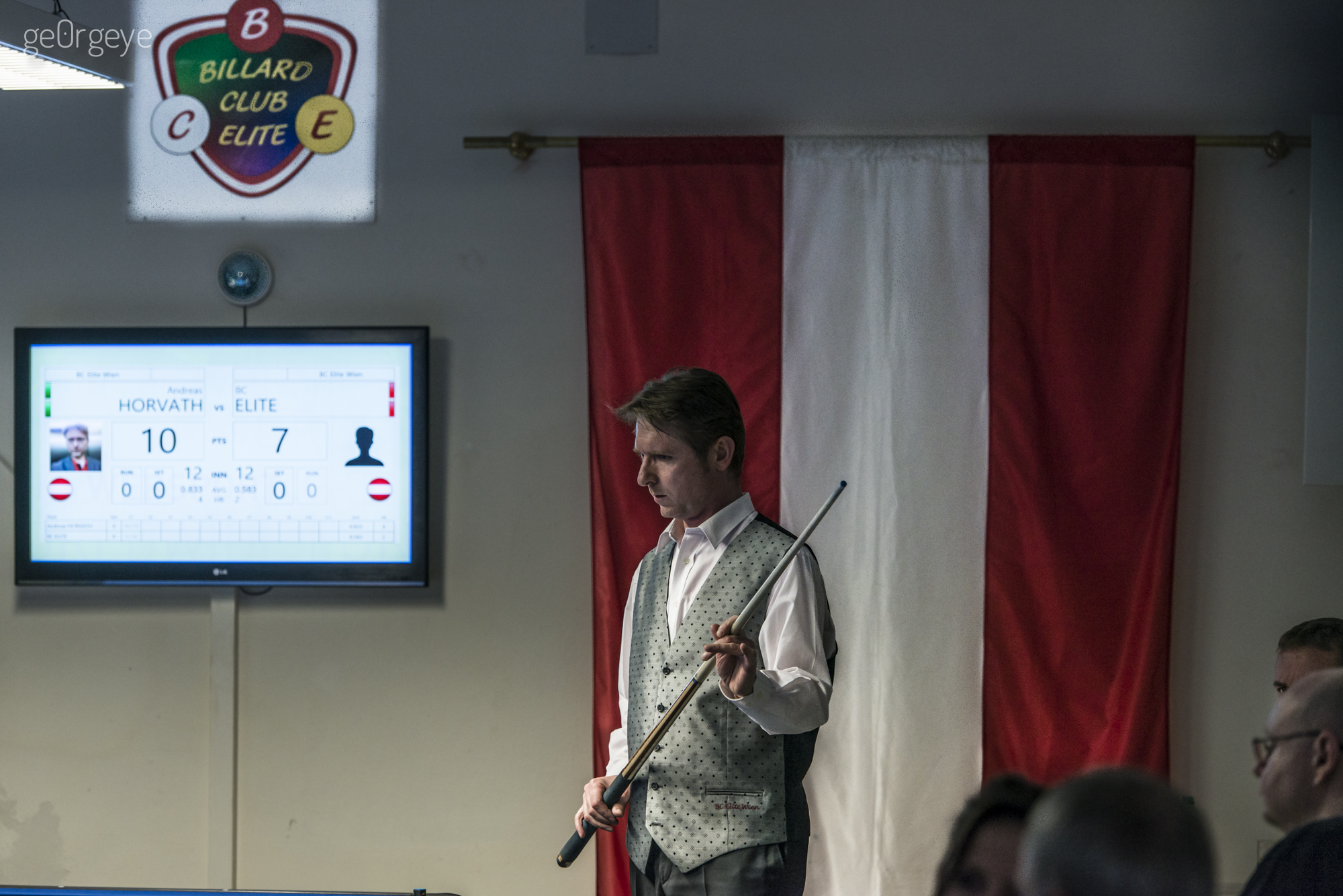 Billard Sportclub Elite (BCE) – Billard Club Kapfenberg (BCK) 6:2 (Andreas HORVATH, 40 in 32, Höchstserie 6)