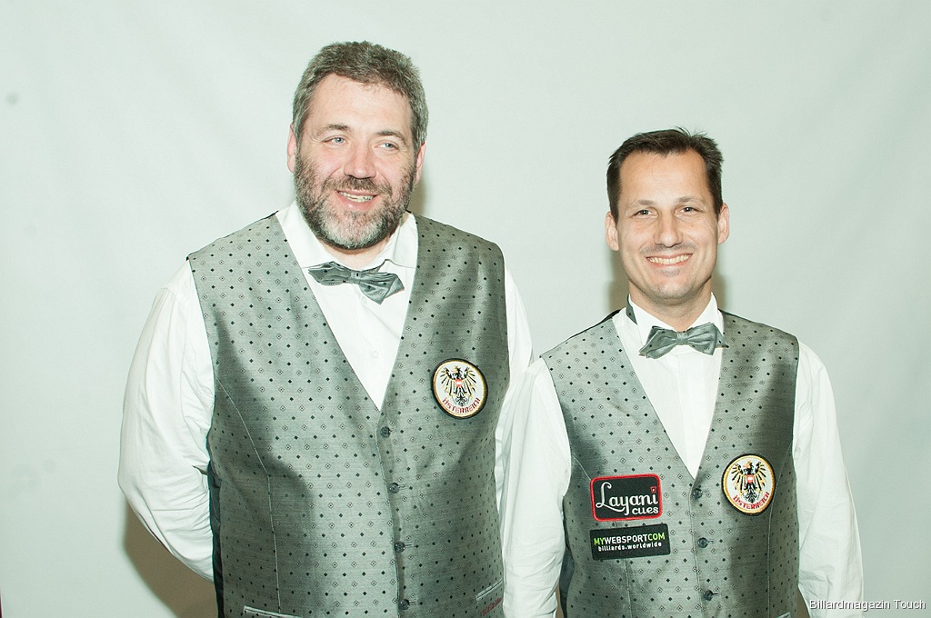 Die Österr. Dreiband Nationalmannschaft bei der EM in Brandenburg 2015, v.l.n.r. Georg SCHMIED, Arnim KAHOFER – Foto (c) Billardmagazin Touch