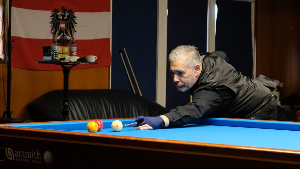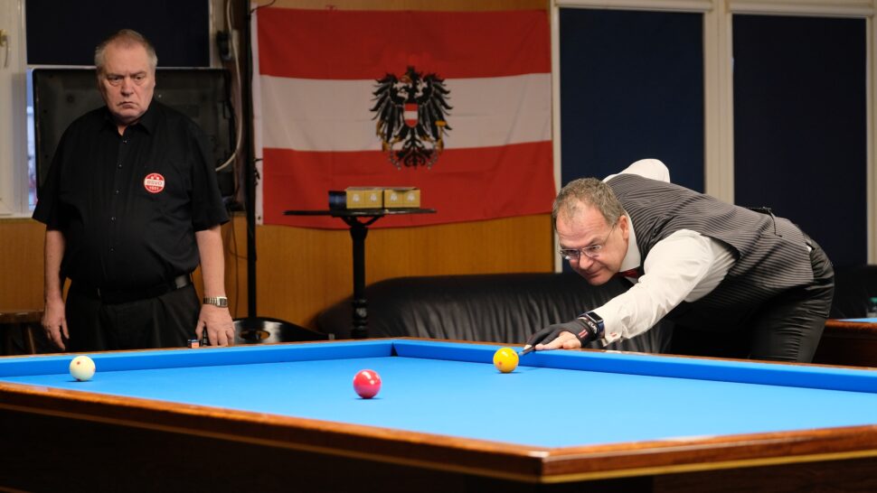 Dort dominierte der mehrfache Dreiband-Mannschaftsstaatsmeister gestern Hikls Vereinskollegen Karl Makik deutlich und sicherte sich mit einem 50:28-Erfolg in 43 Aufnahmen seinen Platz im Endspiel, wo dann eine nervliche Zerreißprobe gegen den Burgenländer Claus Maurer vom Billardsportclub Neusiedl am Ende über die Maximalanzahl von 50 Aufnahmen in einen 48:43-Sieg zum Titelgewinn mündete.