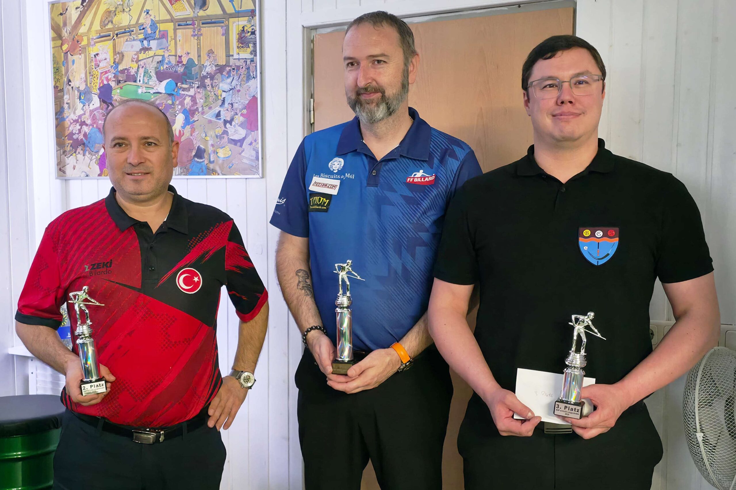 Dahlke blieb mit 503 von 750 möglichen Punkten erstmals in seiner Karriere über der 67%-Marke und erzielte auch bei der höchsten Serie eine neue Bestmarke. „Ich habe meinen High-Run auf 15 gelöste Figuren hintereinander verbessert. Das waren 113 Punkte in Folge. Es war am Ende unglaublich spannend bei den letzten fünf Figuren“, freute sich der Billard-Center-Betreiber, der den regierenden Artistik-Europameister und Lokalmatador Thomas Ahrens aus Deutschland um einen einzigen Punkt hinter sich ließ.