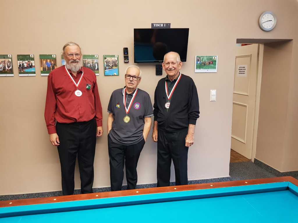 In den Klubräumlichkeiten der Marchfelder Billardfreunde wurde von 30.11. auf 01.12.2019 das Finale der Cadre 35/2 4.Klasse ausgetragen. Dieses Turnier war an Dramatik kaum zu überbieten, da die ersten Drei des Finales die gleichen Partiepunkte erreichten. Letzlich konnte sich der Lokalmatador, Günter Wallner (MBF) mit allen Bestleistungen durchsetzen und gewann hauchdünn vor Lambert Danner (WBA) und Kurt Braito (BWW).