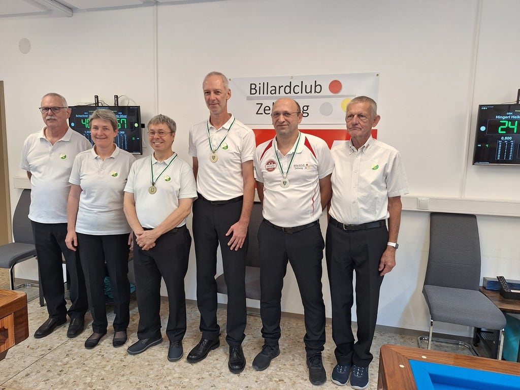 Spannendes Finale am Sonntag: In der letzten Runde hatten noch 4 TeilnehmerInnen Chancen auf die Medaillen. Für Oliver Fritz waren noch die Plätze 1 bis 3 möglich. Im letzten Spiel gegen Hubert Schachner, legte er dann beim Stand von 38:38 in 27 Aufnahmen mit einer sauberen Serie von 19 Punkten den Grundstein für den Turniersieg. Michael Thalmeier sicherte sich im direkten Duell gegen Heike Hingerl den 3. Platz.