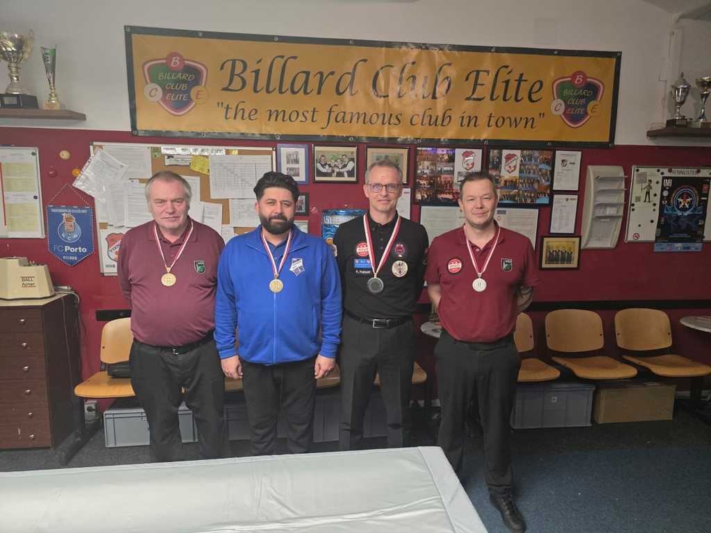 Andreas Felser (BCE) gewinnt ungeschlagen kurz vor Weihnachten erneut die Wiener Landesmeisterschaften im 5-Kegel Billard. Der Ranglistenführende besiegt im Finale Martin Vavra (WBA), auf dem geteilten 3. Platz Herbert Sedlak (WBA) und Huseyin Öztürkmen (AUG)!