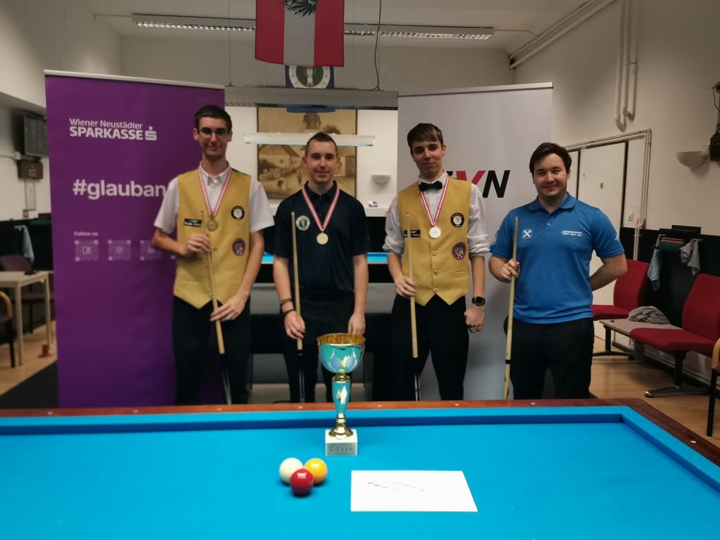 Leo Pirringer wird 4ter und verlässt altersbedingt die U21-Klasse. Wir wünschen ihm alles Gute weiterhin. Spannend bis zum Schluss blieb die Entscheidung, welcher der Csiba-Brüder Silber oder Bronze holen wird. Akos konnte trotz einem 1,6er Schnitt Rafael nicht besiegen und so blieb für ihn nach 4 Siegen und einem GD von 1,566 nur der 3te Platz. Bence gewann eine Partie mehr und er landete dadurch auf Platz 2 mit einem GD von 1,62 und teilt sich mit dem Sieger die Turnierhöchstserie von 11. Rafael hat bereits am ersten Tag mit allen Siegen die Weichen für den Titel gestellt. Er gibt insgesamt nur eine Partie ab - erreichte 10 Punkte und alle Turnierhöchstleistungen: mit einem GD von 1,953 deutlich vor der Konkurrenz - BED von 2,32 und Höchstserie von 11 ist er der verdiente Sieger der ÖM U21. Gratulation an alle Teilnehmer, denn alle haben im Vergleich zum letzten großen Turnier ihr Spiel deutlich verbessert.