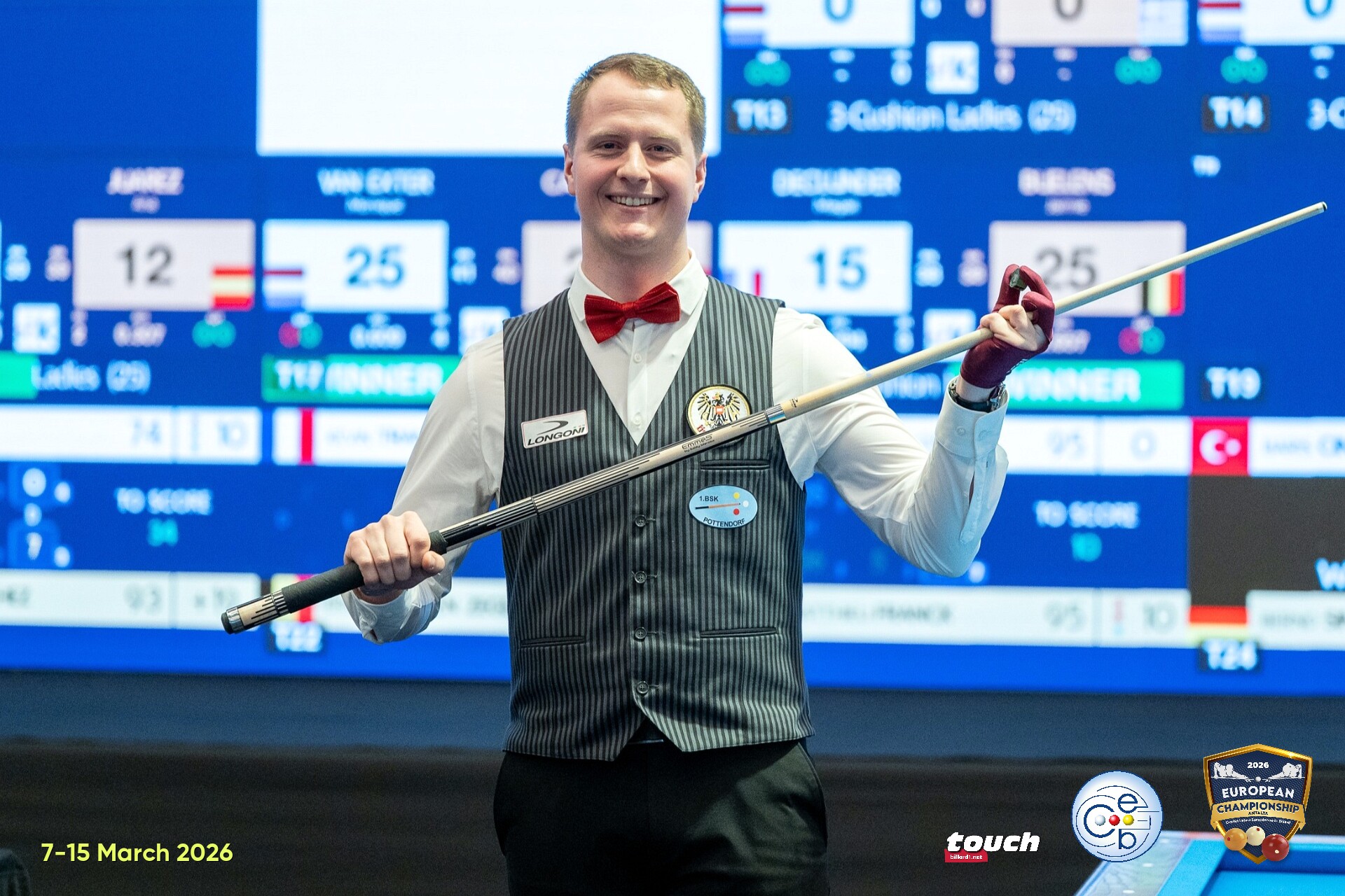 Die „All-In-One“-Carambol-Europameisterschaften 2026 werden bis zum 15. März im Royal Seginus Hotel in Antalya ausgetragen. In den kommenden Tagen fallen noch Entscheidungen in den folgenden Bewerben: