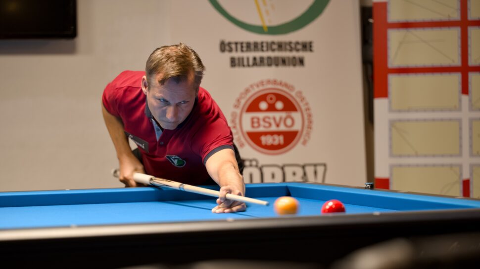 Die beste Partieperformance blieb aber dem Toplegionär der Niederösterreicher, Martin Horn, vorbehalten, der im Match auf Position 1 Dreiband-Staatsmeister Arnim Kahofer mit 40:28 in 28 Aufnahmen fest im Griff hatte.